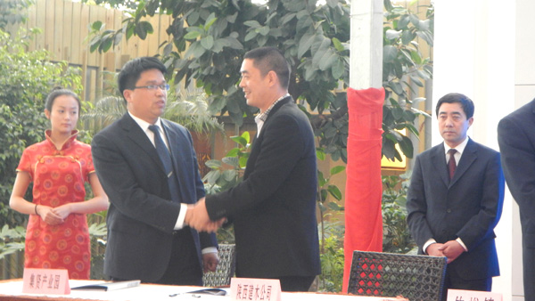 周至縣集賢產(chǎn)業(yè)園區(qū)管委會張峰立書記與陜西建木公司張健康董事長簽約儀式