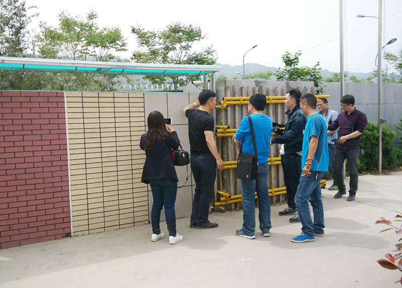 一、公司領(lǐng)導(dǎo)帶領(lǐng)客戶對廠區(qū)的樣板墻進行一一介紹: